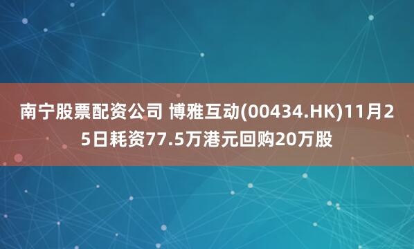 南宁股票配资公司 博雅互动(00434.HK)11月25日耗资77.5万港元回购20万股